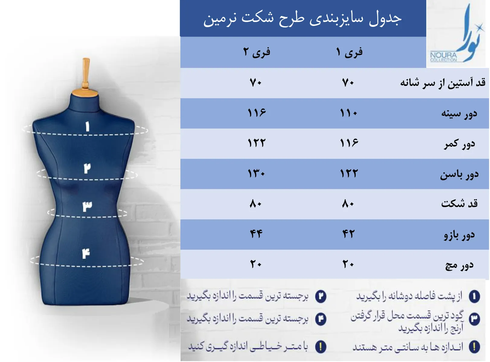 نَرمین در دو سایز فری طراحی شده تا با فرم های مختلف بدن به زیبایی هماهنگ شود: